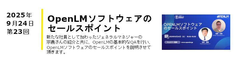 ウェビナーに登録した後、上部のメインメニューの「サービス」セクションをご覧ください。あなたのビジネス分野に特に関連するものが見つかるかもしれません。また、ライセンスマネージャー自体を含む全パッケージを当社が管理するサービスにもご興味があるかもしれません。「Managed Service」をご覧ください。ウェビナーやワークショップに参加する前に、OpenLMをダウンロードしておいてください。